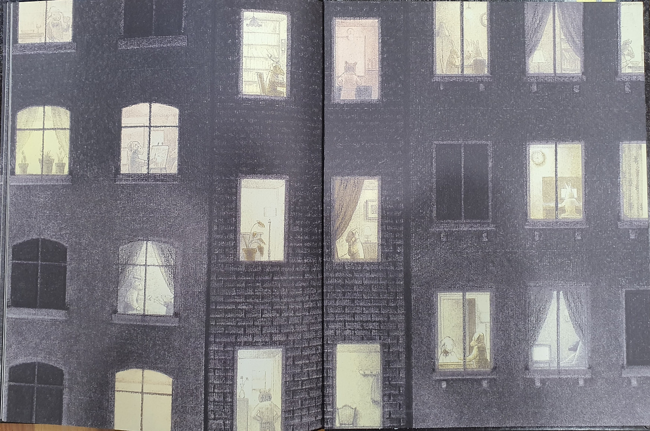 아이에게 밤은 무섭지 않다. 고요하고 포근하다. 아이는 졸린 눈으로 창문 속 이웃을 바라본다. 누군가는 전화를 하고, 누군가는 식사를 준비하고, 누군가는 혼자서 쉬고, 누군가는 여럿이 함께 어울린다.