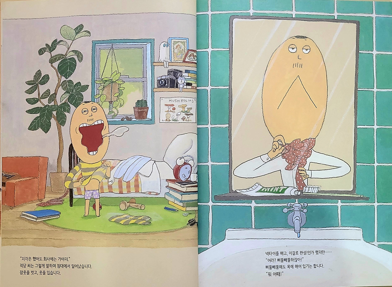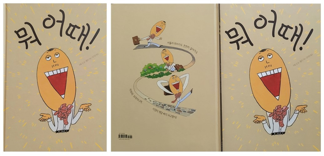 뭐 어때! 당신이 하고 싶다는 말이 이 그림책의 제목이다. 달걀을 의인화한 건가요? 당신이 표지를 보면서 작게 웃는다. 넥타이를 일부러 엉망으로 묶은 건지, 아니면 이것 자체가 하나의 방식인지 모르겠네요. 당신이 표지에 시선을 고정하며 말한다. 제대로 묶을 필요가 없는 거 아닐까요? 내 질문에 당신이 의아하다는 표정을 짓는다. 그럴 수도 있겠네요. 당신의 미간에 살짝 주름이 잡혔다가 펴진다.