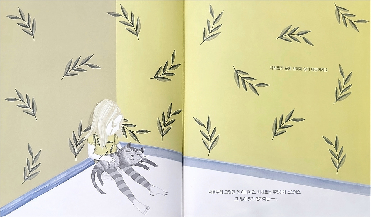 그렇다고 해결되는 건 아니다. 『있잖아, 누구씨』의 '나'가 자신의 속마음을 누구씨에게 털어놓는다고 해서, 『나는 보이지 않아요』의 사하르 옆에 고양이가 있다고 해서 혼자라는 슬픔과 두려움이 해소되지는 않는다. 우리는 자신과 같은 종의 친구가 필요하고, 함께 대화를 나눌 수 있는 상대가 있어야 한다. 매일매일 갈대숲에서 가슴검은도요새가 나를 지켜본다 한들 그의 존재를 느낄 수 없고, 상대의 지지를 얻을 수 없다면 무슨 소용이 있을까. 『있잖아, 누구씨』의 '나'가 다시 누구씨를 찾는 것도, 누구씨를 만나러 오는 동안은 괜찮다고 하는 것도 너무 아픈 일이다. 벽지에 생긴 얼룩에게만 자신의 진심을 털어놓을 수 있는 상황이 또다시 반복된다는 게 참 가혹하다. 사하르는 시리를 만나 점점 뚜렷해졌는데 『있잖아, 누구씨』의 '나'는 답이 없는 벽에 기대 자신을 더 희미하게 만들고 있다. '나'가 왜 우는지 알려하지 않은 채 비난하고, 자신들과 다르면 이상하다 치부하고, 주인공을 거짓말쟁이로 몰아세우는 무리 속에서 '나'는 점점 더 고립될 수밖에 없다. 책등과 이어지는 오른쪽은 직각이지만 책장을 넘기는 왼쪽은 둥글게 처리한 『나는 보이지 않아요』의 표지를 보면서 뾰족하게 솟은 아픔이 누군가와 어울리면서 둥글어지는 게 아닌가, 생각한다. 『있잖아, 누구씨』의 '나'에게도 시리 같은 친구가 나타나길, 이 땅의 외로운 이에게도그러하길 바란다.