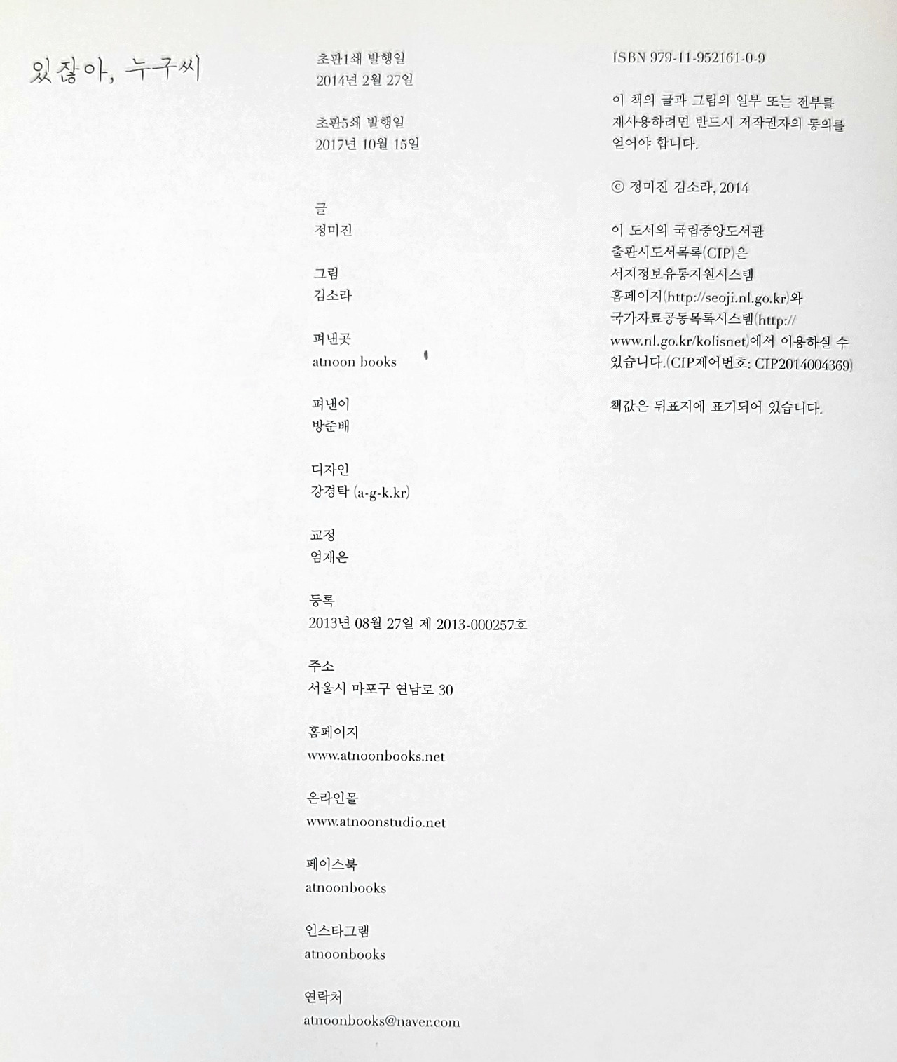 * 『있잖아, 누구씨』, 정미진 글, 김소라 그림, atnoonbooks 펴냄