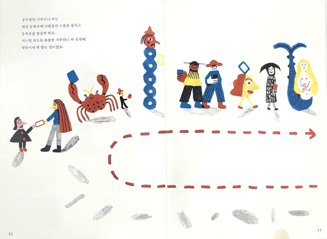 시쿠리니 씨는 로카페르페타 마을에 살고 있다. 이 마을의 주민이 되려면 등기소에 등록을 해야 한다. 등기부에 이름이 없으면 있어도 없는 사람이다. 등기소의 유일한 직원이면서 소장인 시쿠리니 씨가 등록부에 이름을 올리고 등록증을 발급해 줘야 드디어 '있는 사람'이 된다. 지나칠 정도로 꼼꼼하고, 무게를 잡고 싶어 일부러 까다롭게 구는 시쿠리니 씨의 성격과 잘 맞는 직업이다. 시쿠리니 씨는 등록증을 발급해 주기 위해 질문을 퍼붓는다. 그리고는 양식을 채워라, 서류를 작성하라고 요구한 후에 자기 마음대로 그들을 하나의 역할로 정의해 등록증을 발급한다. 에벨리나 아주머니는 청소부로, 마리오는 오븐에 감자를 굽는 사람으로, 루치아는 고슴도치 지킴이로, 굴레일모는 양말 수선공으로, 잔니는 참견쟁이로 등록부에 이름을 올린다. 그들은 이것 말고도 아주 많은 일을 하지만 시쿠리니 씨 마음대로 정한 이름에 불만을 품은 사람은 아무도 없다. 어느 날, 내맘대로 초등학교 2학년 2반 친구들이 시청 등기소로 몰려온다. 12명의 학생 중에는 등기부에 이름이 있는 친구가 아무도 없다. 그러니 그들은 있어도 없는 사람들이다. 아이들은 등록증을 받기 위해 자기가 어떤 사람인지 말한다. 병뚜껑을 수집하는 마태오, 사촌이 열두 명이나 있는 아델레, 반에서 제일 키가 큰 안드레아, 목이 아픈 자코모, 아이들이 발음을 잘못하면 고쳐 주는 아멜리아, 수염을 잘 그리는 도메니코 덕에 시쿠리니 씨는 정신이 없다. 시쿠리니 씨는 아이들 때문에 엉망이 된 일상을 정리하느라 바쁘다. 등록증을 휘갈겨 쓰고, 아이들에게 조용히 하라고 소리를 지르고, 책상을 정리하고, 도장을 찍고, 서류를 작성하고, 어지럽게 널린 물건을 정리하고, 액자가 떨어지지 않게 몸을 날리며 오전을 보낸다. 다음 날, 내맘대로 초등학교 친구들이 시쿠리니 씨 사무실에 또 찾아온다. 병뚜껑을 수집한다던 마태오는 이번에는 부메랑을 잘 던진다고 한다. 아멜리아는 이번 주 반장이고, 자코모는 이제 목이 안 아프고, 아델레는 책을 잘 읽는단다. 아이들에게 다시 등록증을 만들어주는 시쿠리니 씨는 이번에도 정신이 하나도 없다. 다음 날 또 찾아온 내맘대로 초등학교 2학년 2반 친구들의 손에는 색종이가 가득하다. 자기가 누구인지, 무엇을 잘하는지 써서 갖고 온 것이다. 아이들은 자신의 등록증이 더 많다며 목소리를 높인다. 57개나 된다며 자랑하는 아이도 있다. 아이들은 자기들이 모아 온 등록증에 서명을 해달라고 시쿠리니 씨를 재촉한다. 사십 년 동안 근무한 모범 공무원이면서 등기소에서 제일 높은 자리에 있는 시쿠리니 씨는 은퇴를 앞두고 큰 위기를 맞는다.