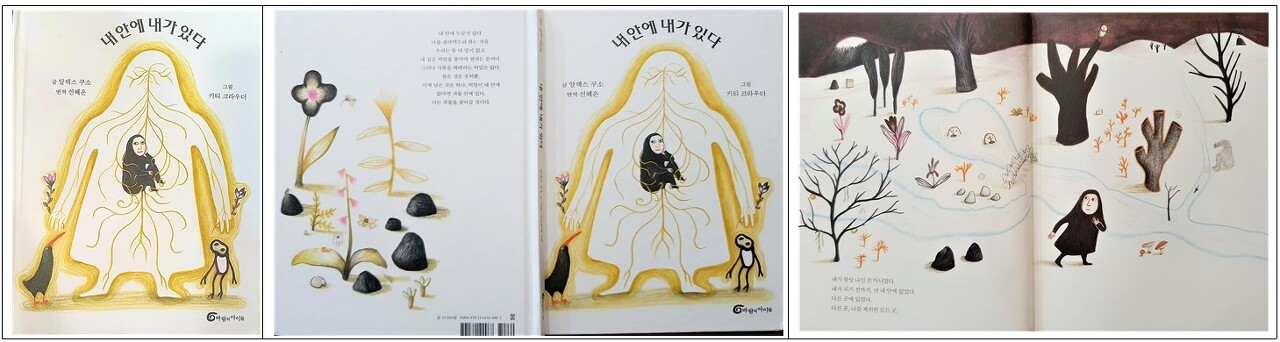 『내 안에 내가 있다』의 이야기는 은유와 상징이 난무하고, 그림은 기괴하고 우울한 수수께끼를 품고 있습니다. 문장과 문장을 연결할 때마다 물음표가 생기는데 그림은 더 난해합니다. 그런데 이상하죠. 머리를 갸웃하지만 무언가가 자꾸만 가슴을 두드립니다. 그래서 자꾸만 보고 또 봅니다. 묵직한 글과 기괴하면서 아름다운 그림을 보고 있으면 제 안에 있는 또 다른 제가 싸움을 걸어옵니다. 왜 계속 자기를 외면하냐며 집요하게 저를 붙잡고 늘어집니다. 저 역시 입을 닫은 채 그 괴물을 더 깊은 곳으로 밀어 넣습니다.