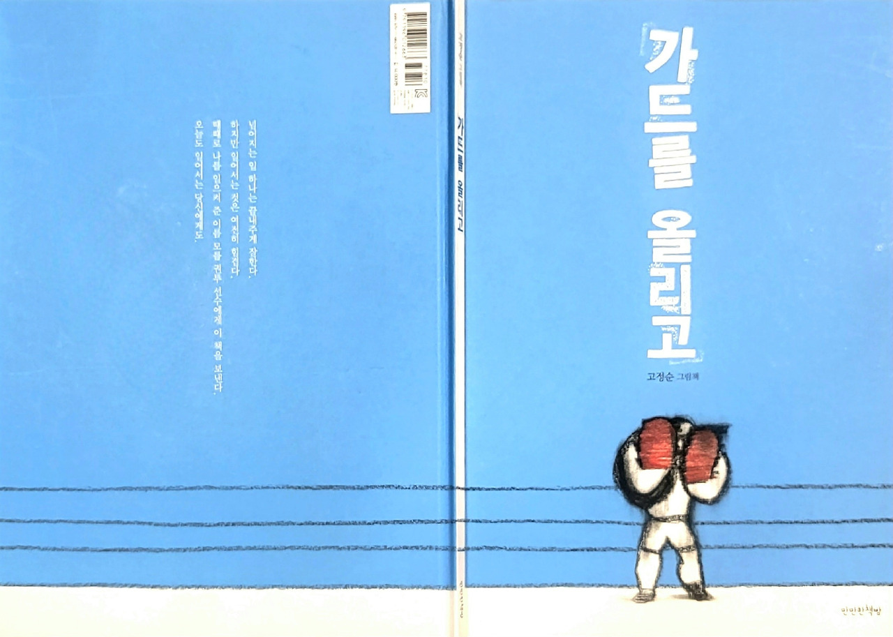 『가드를 올리고』는 빨간 글로브를 낀 선수와 검은 글로브를 낀 선수의 결투를 산에 오르는 과정과 맞물려 표현하고 있습니다. 글은 산을 오르는 고단함과 막막함에 대해 쓰고, 그림은 링 위에서 처절하게 싸움을 벌이는 두 선수를 그립니다. 관객은 없습니다. 오로지 '나'와 상대만 있을 뿐이죠. 어느 순간 상대도 사라집니다. 이제부터는 혼자만의 싸움입니다. 내가 뭘 하는지, 다시 올라갈 수 있는지, 길을 잃은 건 아닌지, 바람이 다시 불지 막막하기만 합니다. 이 고된 걸음을 멈추고 싶은 '나'를 '나'는 이겨야만 합니다.