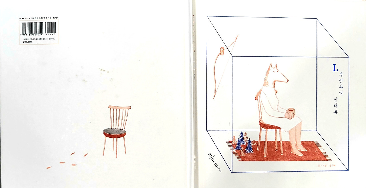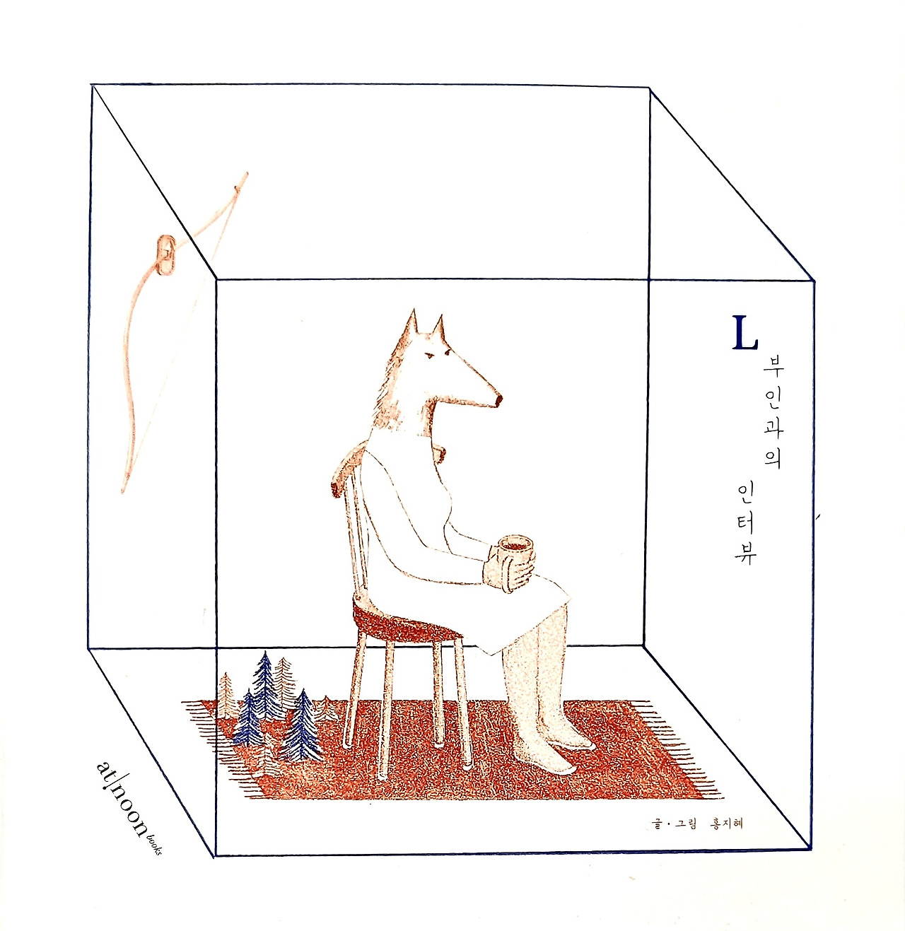 별생각 없이 대충 보았던 앞표지를 다시 본다. L부인의 얼굴은 늑대이지만 몸은 사람이다. 커피잔을 무릎 위에 올려놓고 의자에 앉아 있는 L부인은 얼핏 보면 단정하고 얌전하게 보인다. 그런데 그녀의 눈썹은 올라가 있고, 입은 굳게 닫혀 있다. 허리를 꼿꼿하게 세운 채 앉아있는 몸에서 힘이 느껴진다. 발밑에 깔린 붉은색 양탄자와 귀퉁이에 작게 솟아오른 나무들이 억누르고 있는 그녀의 내면처럼 보인다. 그녀를 둘러싼 육면체의 공간은 아늑함과는 거리가 멀다. 그녀를 가두고 있는 것처럼 답답하고 갑갑하다. 벽에 걸린 활은 그녀에게 여전히 사냥꾼의 본성이 남아있음을 말해주고 있다.