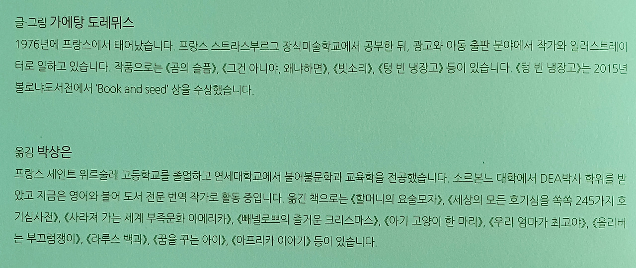 텅 빈 냉장고, 가에탕 도레뮈스 지음, 박상은 옮김, 한솔수북 펴냄