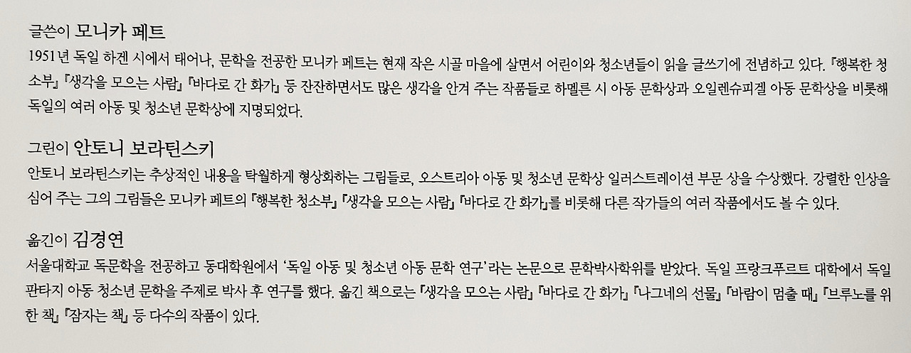 『행복한 청소부』를 처음 읽었을 때, 감동이나 재미를 느끼지 못했다. 대체 사람들은 이 책 어디를 보고 좋아하는지 이해하지 못했다. 십 년에 거쳐 다섯 번 정도 읽었다. 생각이 나지 않아 읽었고, 읽어야 해서 읽었고, 누군가처럼 감격하고 싶어 읽었다. 읽을 때마다 감정이 달라지고, 보지 못했던 게 보였지만 그게 전부였다. 큰 울림은 없었다.