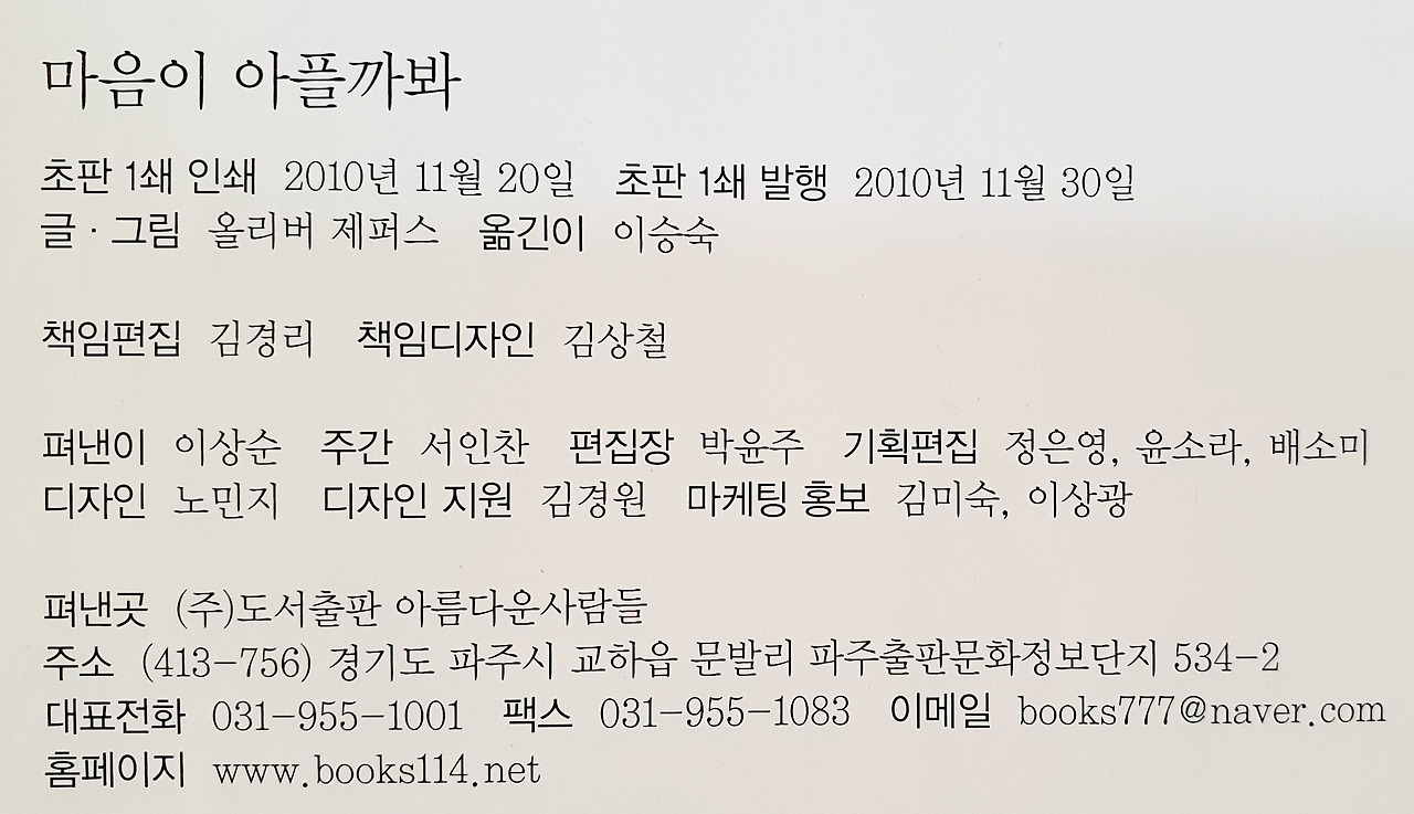마음이 아플까봐, 올리버 제퍼스 지음, 이승숙 옮김, 아름다운 사람들 펴냄