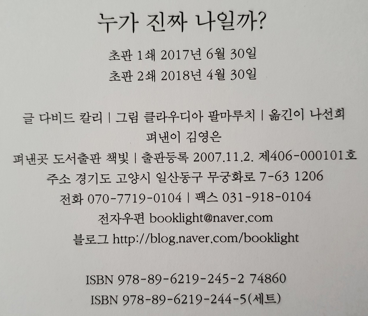 * 누가 진짜 나일까? 다비드 칼리 글, 클라우디아 팔마루치 그림, 나선희 옮김, 책빛 펴냄
