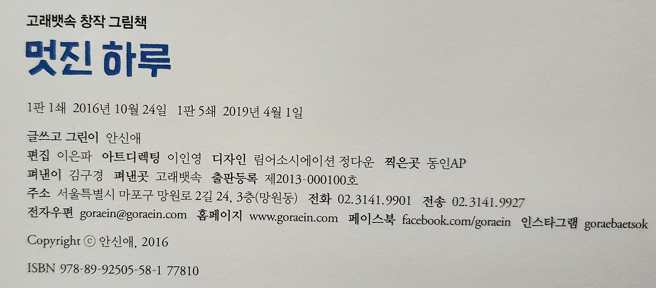 * 멋진 하루, 안신애 지음, 고래뱃속 펴냄