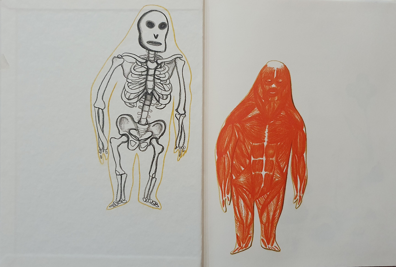 표지를 넘기자마자 멈칫했다. 이렇게 불쑥 인체 해부도를 만날지 몰랐다. 뼈, 근육, 혈관 등 몸을 이루고 있는 것들은 흉측하고 기괴했다. 제목과 뒤표지에 있는 설명을 통해 '내 안에 있는 또 다른 나'를 만날 준비를 했는데 진짜 내 몸속을 봤다. 실제 사진도 아니고, 세밀하고 자세하게 묘사한 것도 아니지만 이 그림은 충격이었다. 불특정 누군가의 몸이 아닌 나의 몸이라는 것을 인식했기 때문이었다. 한 번도 나와 떨어진 적이 없었는데도, 계속 내 안에 살고 있었는데도, 이미 오래전부터 그 존재를 알고 있었는데도 이게 내 것이라는 게 한없이 낯설고 징그러웠다.