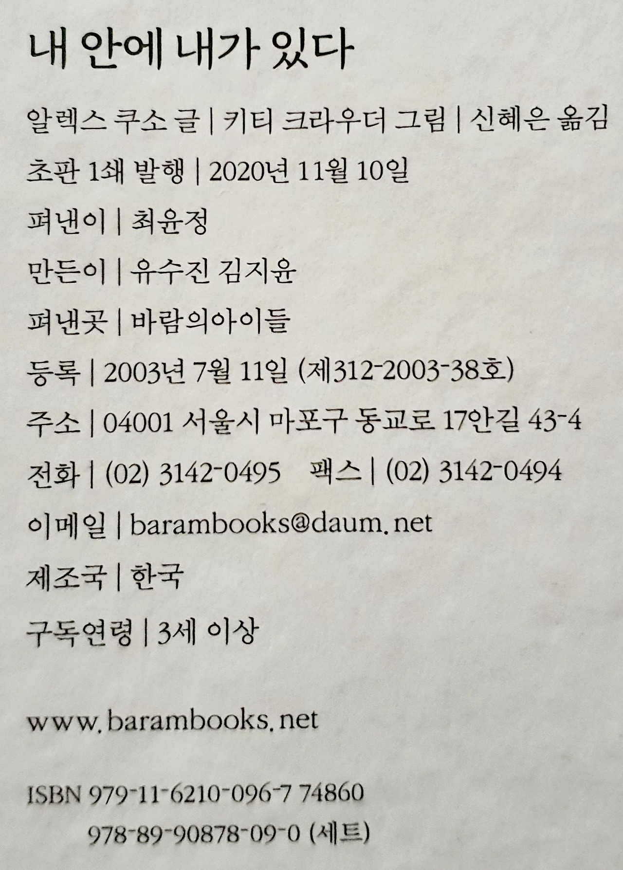 * 내 안에 내가 있다, 알렉스 쿠소 글, 키티 크라우더 그림, 신혜은 옮김, 바람의아이들 펴냄