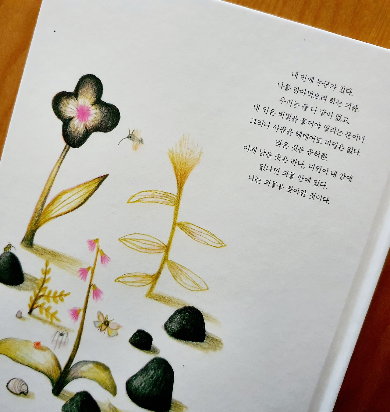 난 괴물 안은 다른 나라일 거라고 기대했다. 춥고 바람 불고, 눈 덮인 산과 어쩌면 꽃도 있는 그런 곳. 혹 꽃들이 피어 있다면 꽃의 얼굴에서 비밀을 찾아내고 싶었다.