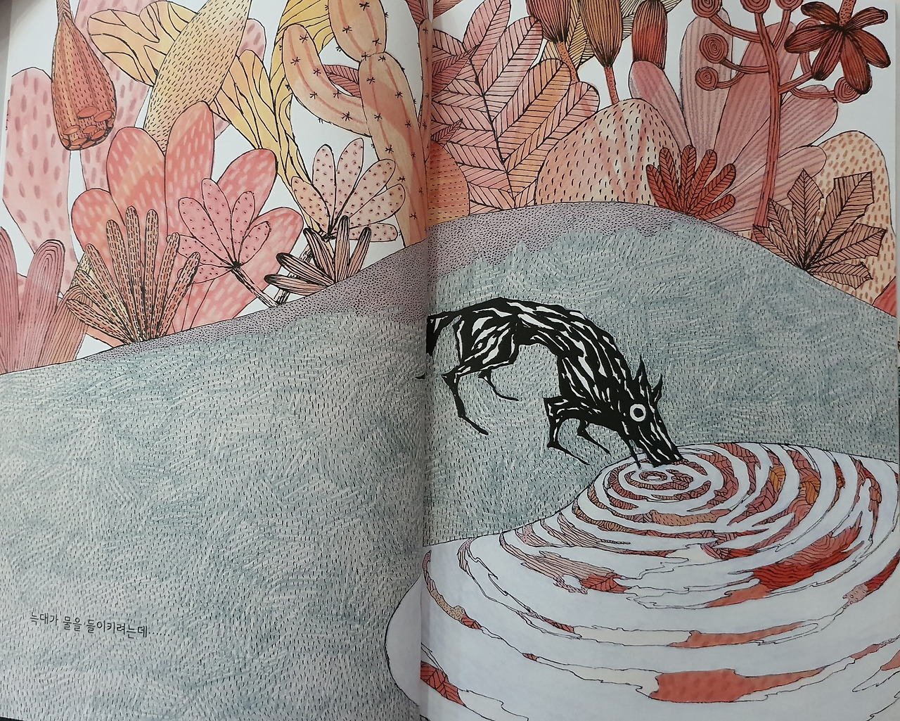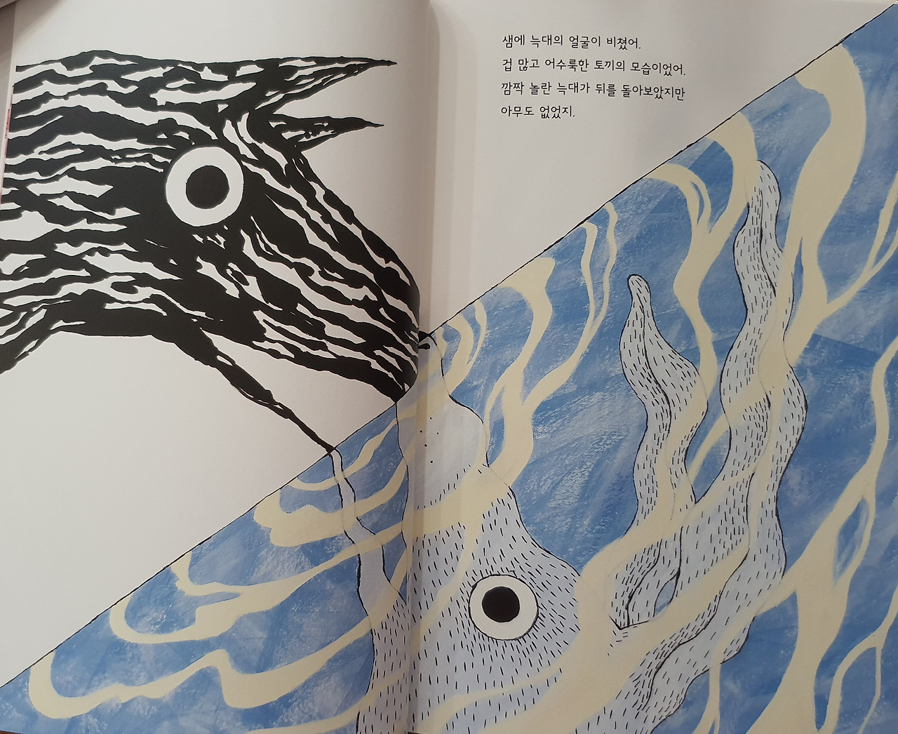 『마음샘』의 늑대도 그런 마음이었다. 뜻하지 않게 샘물에서 마주한 토끼를 어떻게든 없애야 했다. 용감한 늑대에게 토끼가 있다는 건 치욕이다. 다른 동물들에게 들키기 전에 토끼를 쫓아내야 하는데 번번이 실패다. 아무리 애를 써도 토끼는 늑대와 한 몸인 것처럼 떨어지지 않는다.