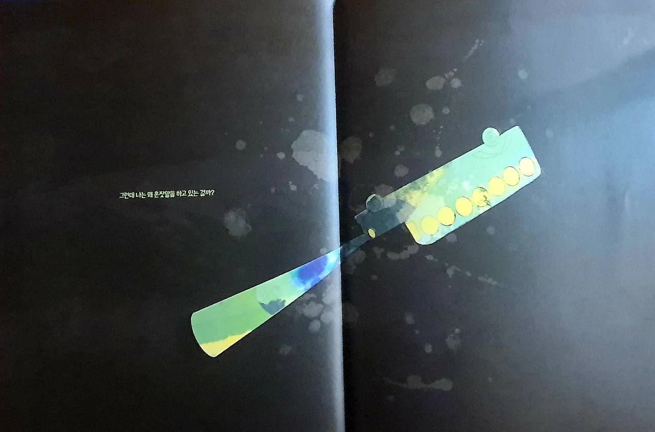 『밤버스』의 화자는 여행 가방을 끌고 버스정류장으로 향합니다. 버스를 기다리는 동안 여행을 떠날 수 있을지 걱정입니다. 걱정은 꼬리에 꼬리를 물고 이어집니다. 혼자서도 괜찮을지, 짐이 너무 많은 건 아닌지, 잘못된 길로 들어서거나 친구를 사귀지 못하면 어떻게 해야 하는지 등등의 질문이 이어질수록 불안도 커집니다. 모자를 쓰고, 목도리를 단단하게 두르고 여행 가방 안에 필요한 물건과 필요하지 않은 물건까지 챙겼을 텐데 주인공은 마음이 놓이지 않나 봅니다. 상상 속에서 주인공이 탄 버스는 하늘을 떠다니기도 하고, 숲을 헤매기도 하고, 복잡한 도시를 지나기도 합니다. 작가의 글에 나오는 '불확실한 설렘과 분명한 불안감'이 강렬하면서 몽환적인 그림으로 표현되고 있습니다. 책장을 넘길 때마다 밤이 불러오는 환상과 두려움에 빠지는 느낌입니다.