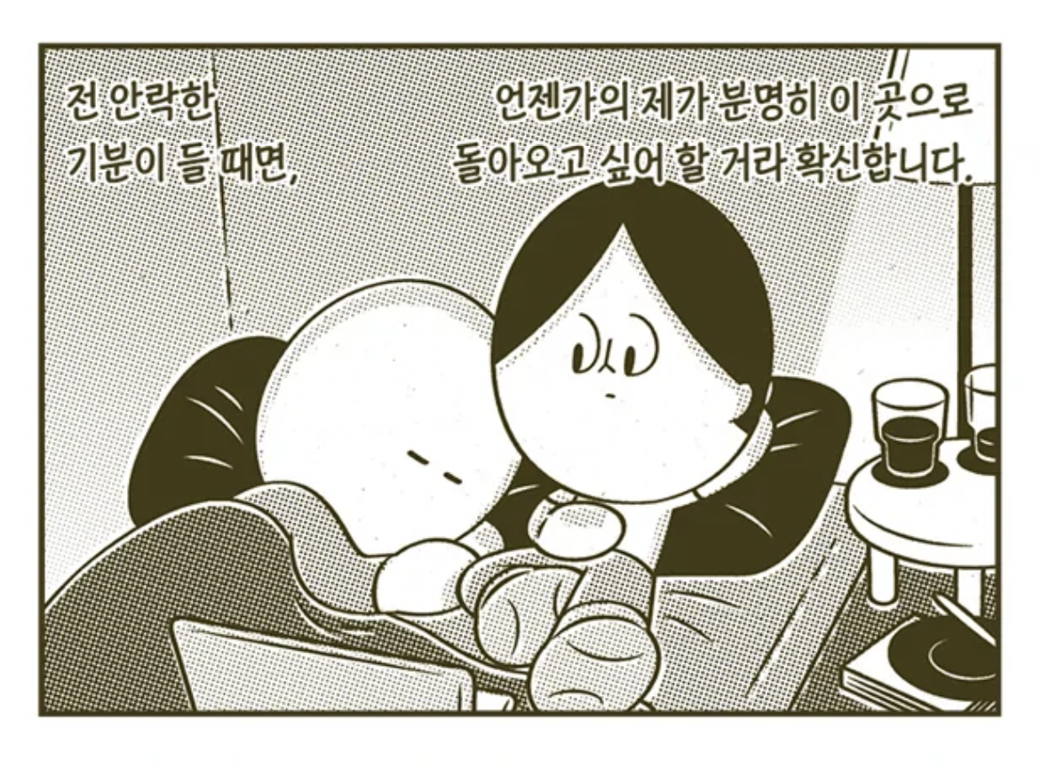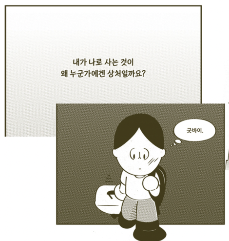 혼자인 나를 제대로 길러보기 시작한 것은 4년에 가까워지는 것 같다. 만화책이 통째로 그 4년의 시간들 처럼 느껴졌다. 나에게 영향을 많이 미치는 당연한 관계들을 최대한 끊어내고 나 자신을 고립시켜 오로지 생존만을 도모했던 시간. 그 과로와 그 고단함과 그 질문과 그 생각들.
