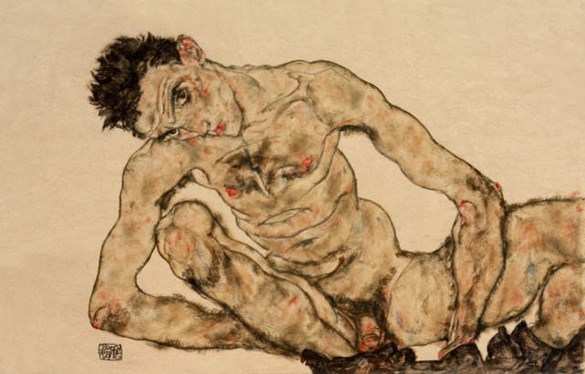 영화의 소품으로 제작된 작품, 에곤 쉴레 <누드 자화상> 종이에 수채와 연필 29.5x45.8cm 1916