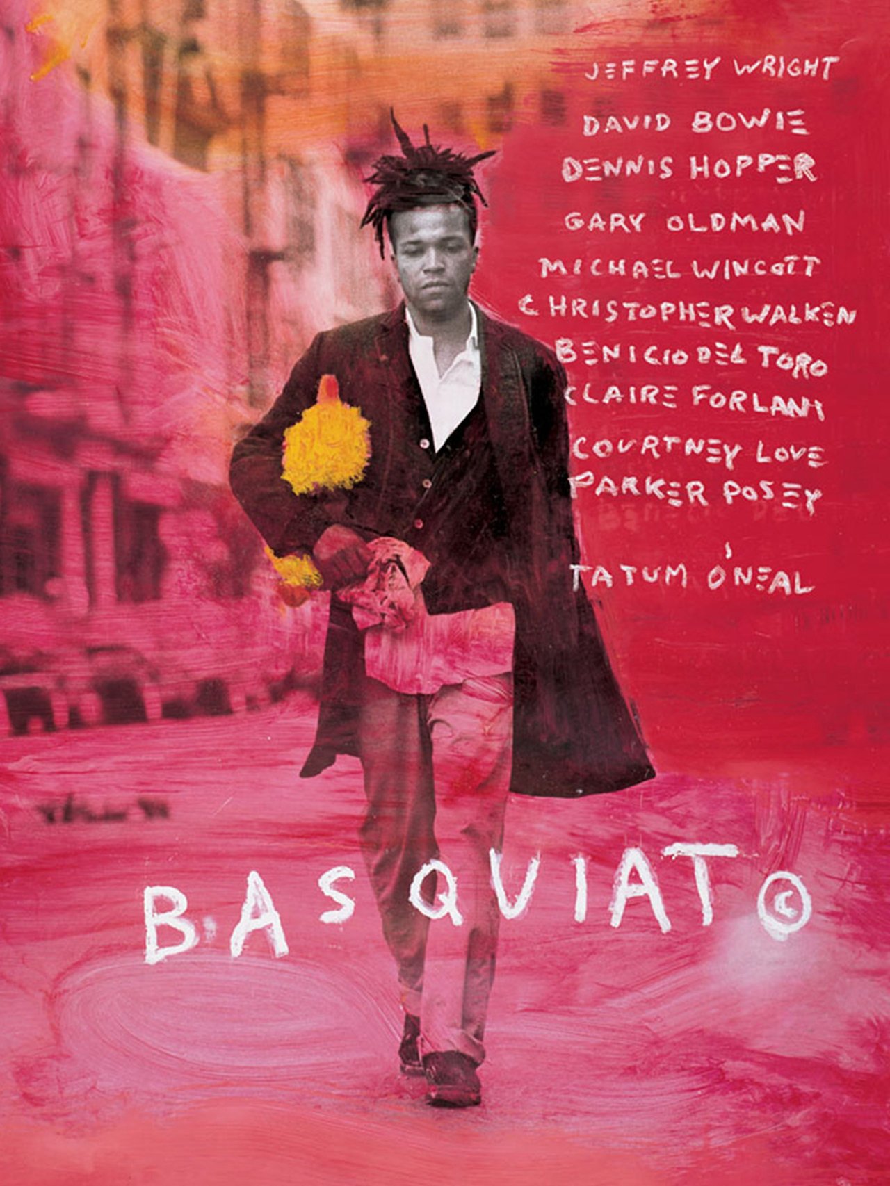 잠실 롯데월드타워 7층에는 2018년 1월 개관한 롯데뮤지엄이 있어요. 2020년 10월 8일부터 내년 2월 7일까지, 장 미쉘 바스키아(Jean-Michel Basquiat, 1960~1988)의 대규모 전시가 열리고 있어요. 회화, 조각, 드로잉, 세라믹 등 총 150여 점의 작품이 전시되었다고 하니 규모가 엄청나지요? 그래서 오늘은 장 미쉘 바스키아를 다룬 영화 <바스키아>(1996)에 관해 살펴보는 시간을 가지려고 해요. 바스키아는 1980년대 미국 화단에 혜성처럼 등장해 거칠지만 독특한 작품으로 빠른 성공을 거두었어요. 8년 여의 기간 동안 3천여 점의 작품을 제작할 정도로 많은 양의 작품을 만들어냈고, 여러 기법을 실험했어요. 그렇지만 약물과다 복용으로 27살의 나이에 요절했어요. 이 영화는 신표현주의 화가이자 영화감독으로 활동한 줄리언 슈나벨(Julian Schnabel, 1951~)이 감독을 맡았어요. 실제로 바스키아와 동료 사이로 잘 알고 지냈다고 하고, 바스키아의 작품을 소유한 사람들이 영화 촬영에 협조하지 않아서, 감독이 직접 영화에 나오는 바스키아의 그림들을 모두 그렸다고 해요.
