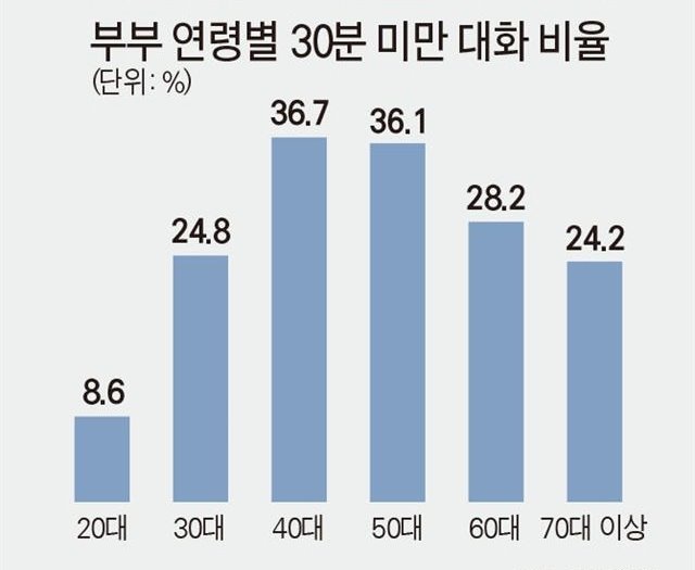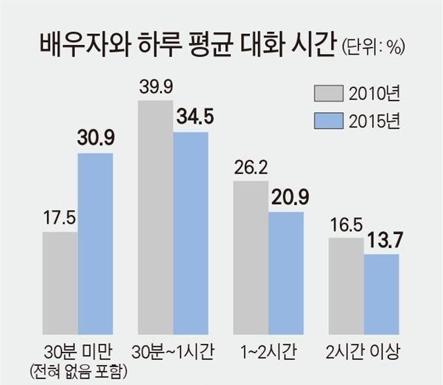 부부 3쌍중 1쌍은 하루 평균 대화시간이 30분 미만이었다.