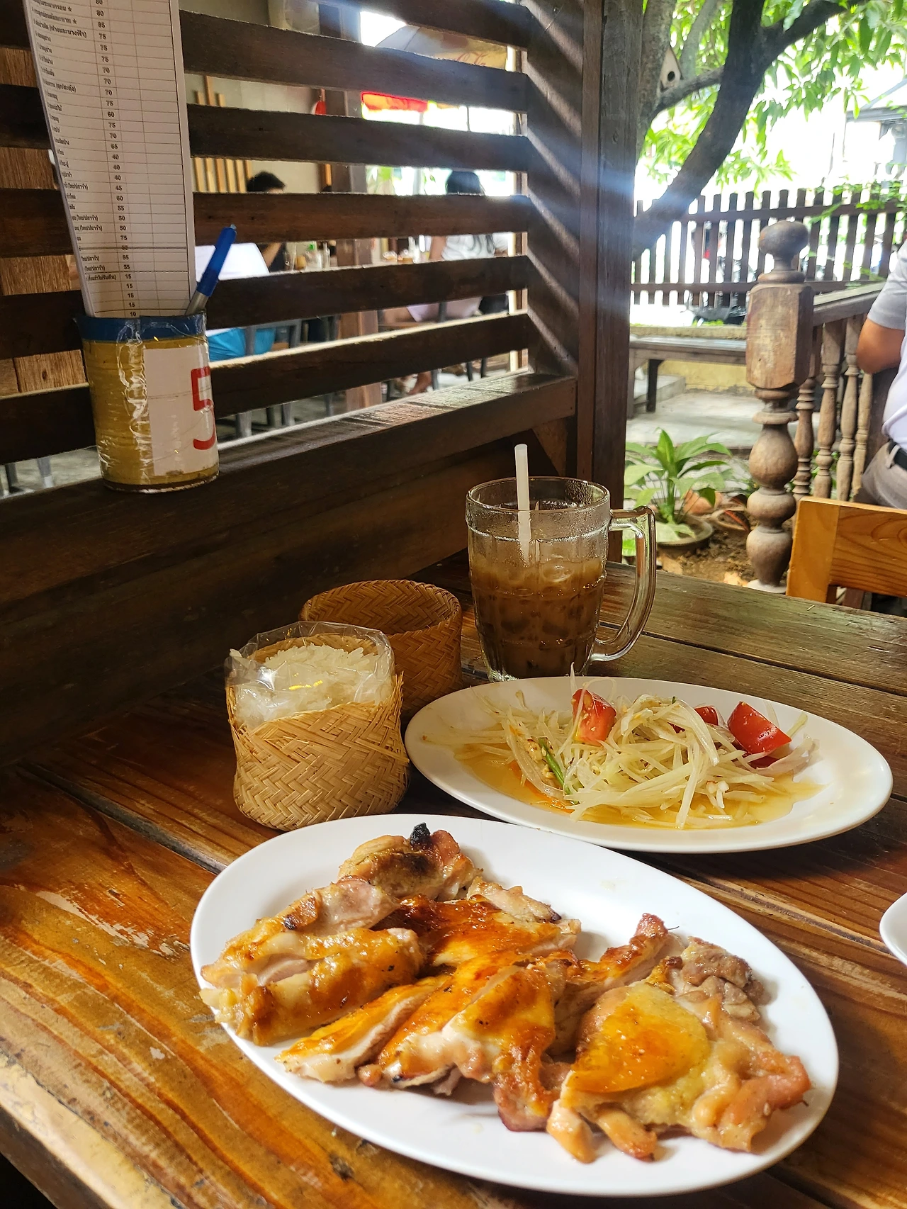 바로 여기다. 치앙마이 닭고기구이 최고 맛집이라고 하던데. 먹어보니 정말이다. 적당히 기름지고 담백하고. 고기 잡내도 전혀 안 난다. Sticky rice, 솜땀과 같이 먹으니 궁합이 아주 좋았다. 타이 커피도 시켜봤다. 달다. 걍 다방커피다. 다 해서 7천 원도 안 나옴. 맙소사, 아이 러브 치앙마이.