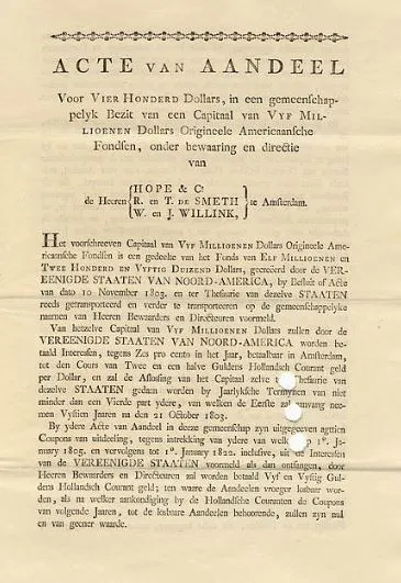1804년 호프앤코(Hope & Co) 발행 주식 <출처 : 위키피디아>