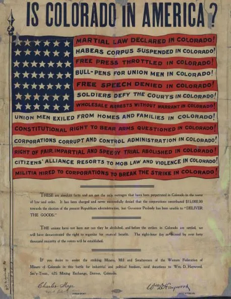 이 파업은 '서부광부연맹(Western Federation of Miners, WFM)'의 주도하에 진행된 파업사건으로, 주 민병대와의 교전도 벌어졌을 만큼 격렬한 파업이었다.