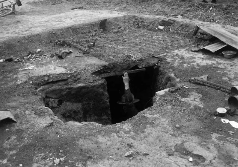 미처 도망을 가지 못한 네 명의 여자와 11명의 어린이가 하나의 천막 아래 모여, 파 놓았던 지하 대피호에 몸을 숨겼다.