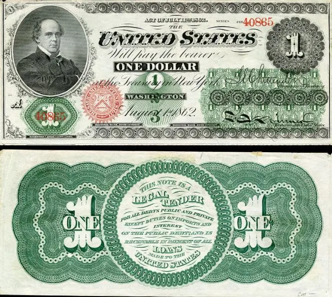 가장 먼저 연방정부의 명의로 그린백(Greenbacks) 지폐를 발행해 비용 지급에 사용하였다.