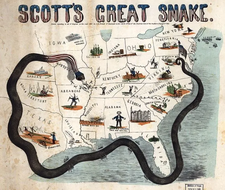 남부 해안을 봉쇄한 북군의 아나콘다 작전 <출처 : 위키피디아>