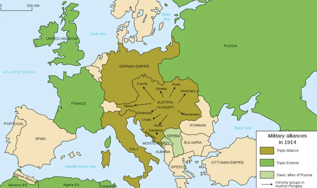 1차 세계대전 중 나뉘어진 유럽의 국가들 <출처 : 위키피디아>