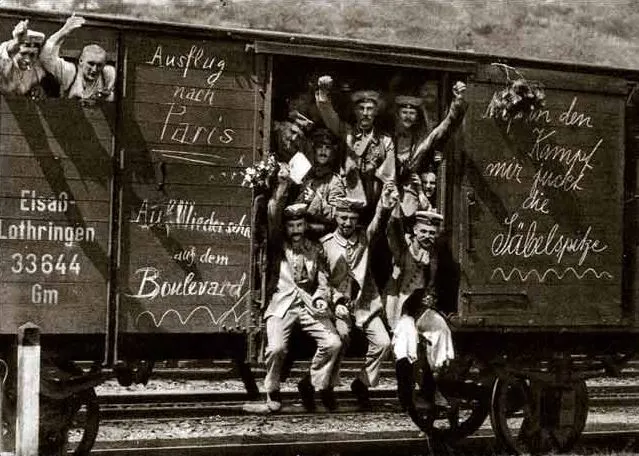 전쟁터로 향하는 독일군 병사. 전쟁은 오래 걸리지 않을 줄 알았다 <출처 : 위키피디아>