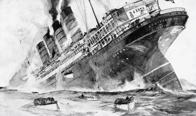 1915년 5월, 영국 민간 여객선 루시타니아(Lusitania) 호가 독일 잠수함의 어뢰 공격에 아일랜드 남쪽 해안에서 격침되어 침몰된 것이다.