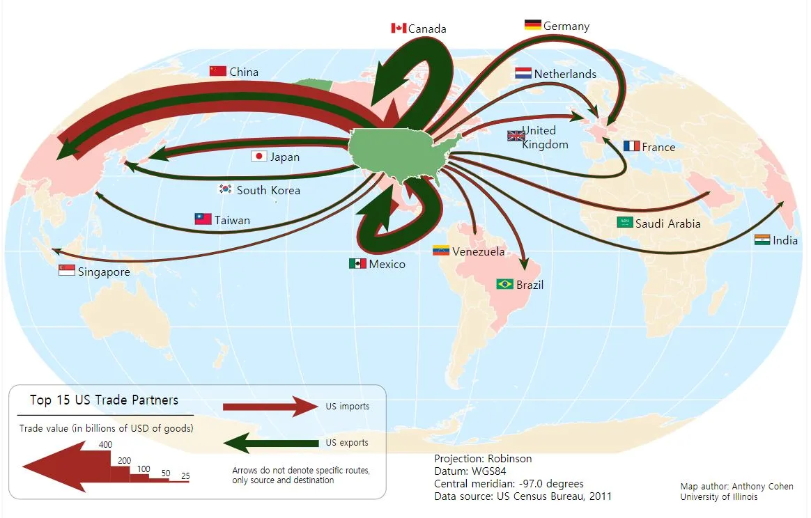 미국의 무역 지도 모습 <출처 : 위키피디아>