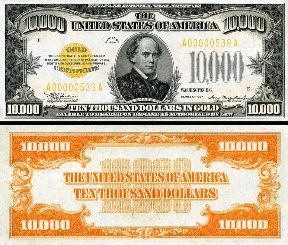미국의 1만 달러 금 증서 모습 <출처 : 위키피디아>