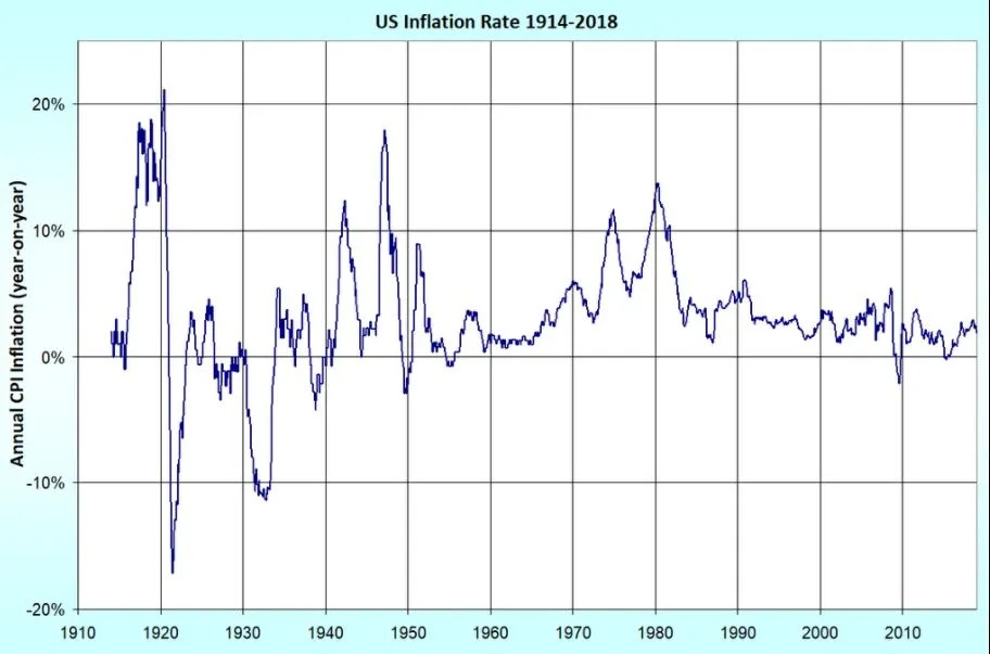 미국의 인플레이션 변동 그래프 <출처 : 위키피디아>