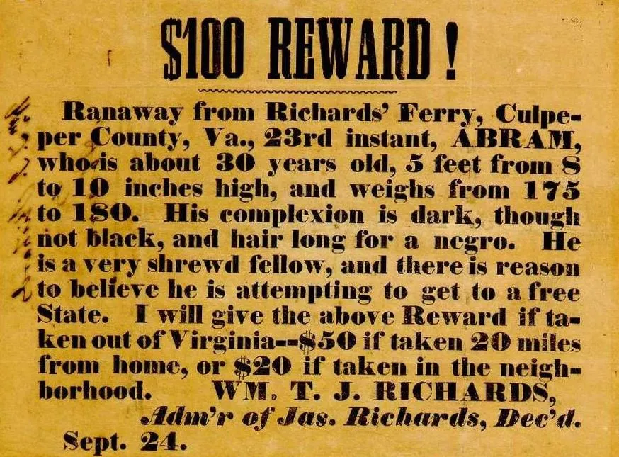 도망친 노예를 잡으면 100달러를 준다는 현상금 포스터 <출처 : 위키피디아>