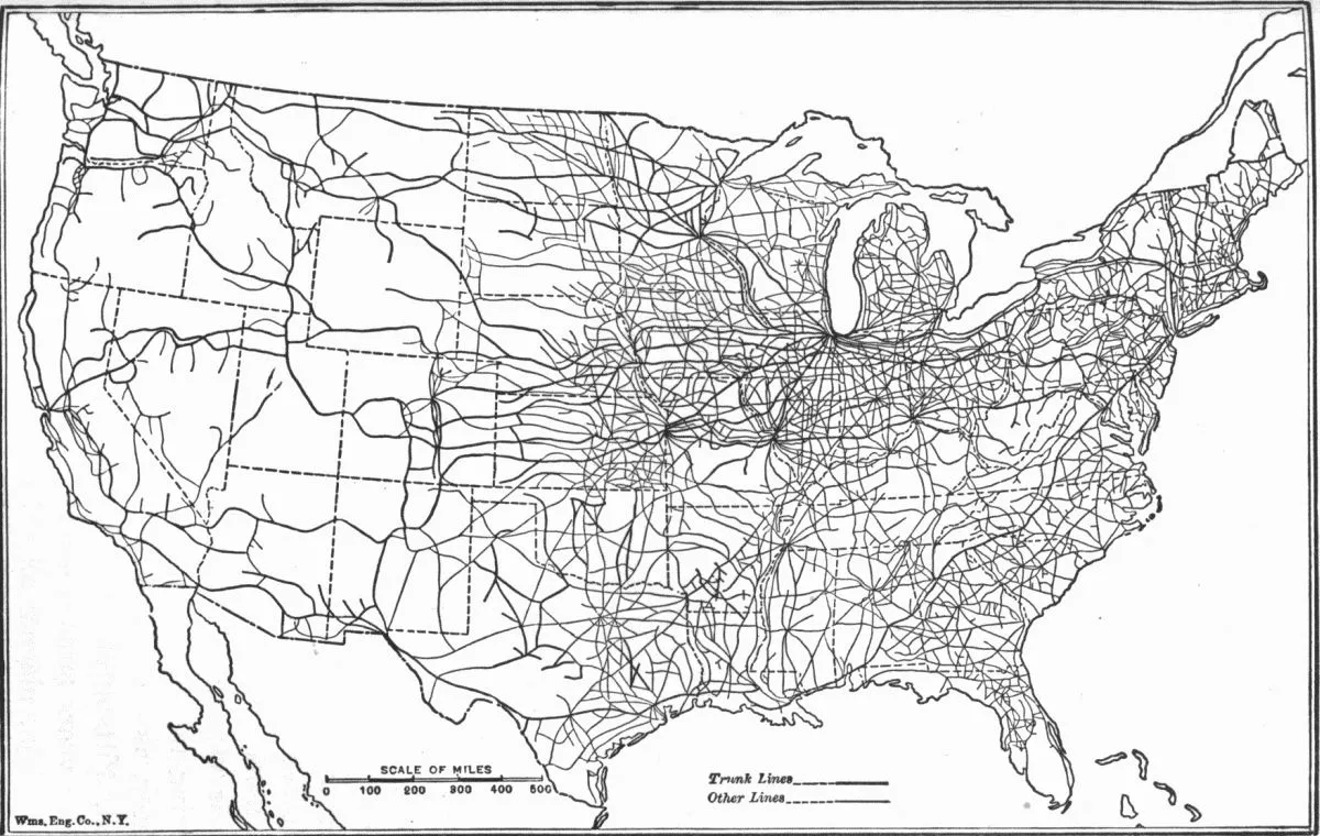 1918년 미국 철도 지도 <출처 : 위키피디아>