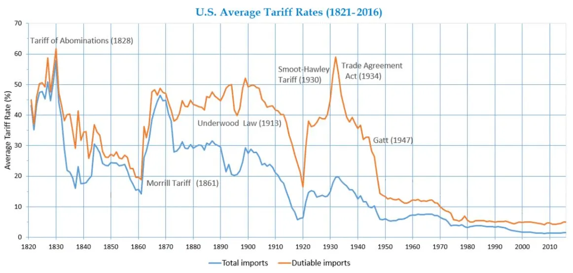 미국의 관세율을 나타낸 모습. 1930년에 관세율이 폭등했다 <출처 : 위키피디아>