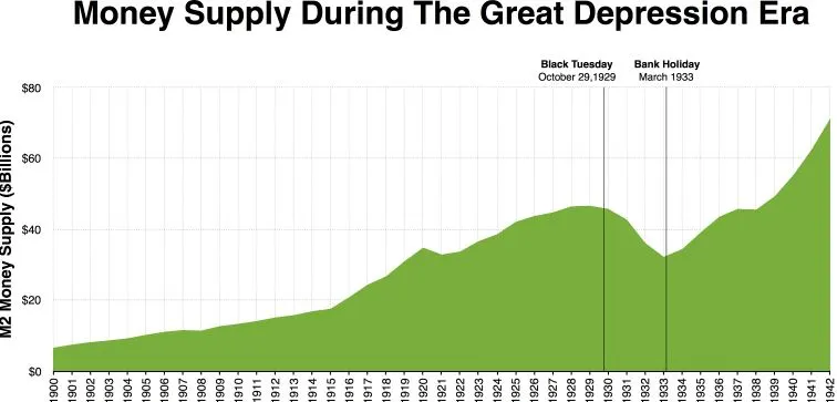 당시 은행장인 해리슨은 전임 은행장이었던 벤저민 스트롱의 유지를 받들어 금융시장에 유동성을 제공하는데 노력했다.