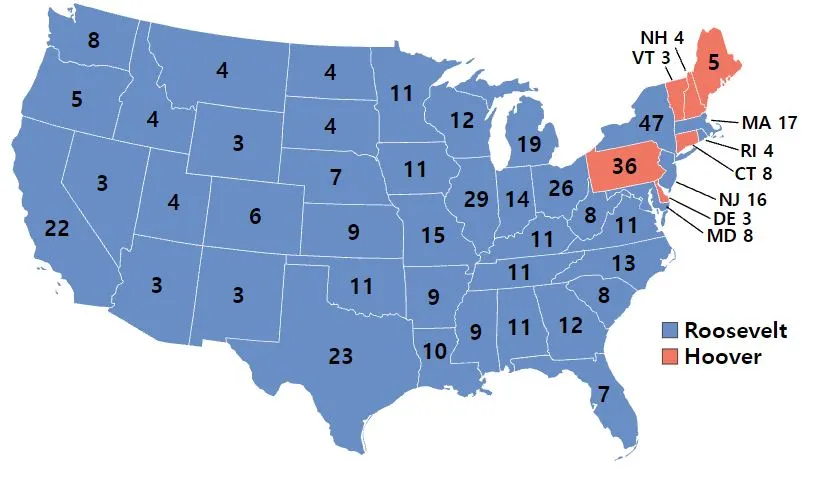 1932년 대통령 선거 결과 압도적인 승리를 거두었다. <출처 : 위키피디아>