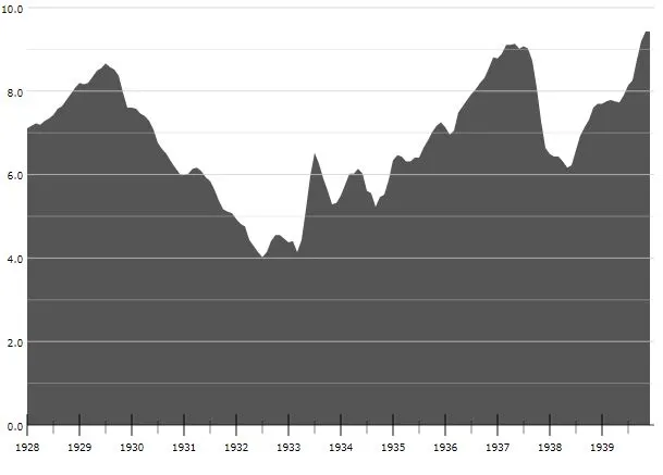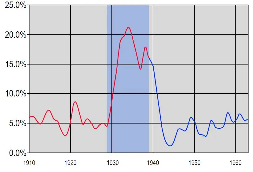 대공황 당시 치솟은 실업률 <출처 : 위키피디아>
