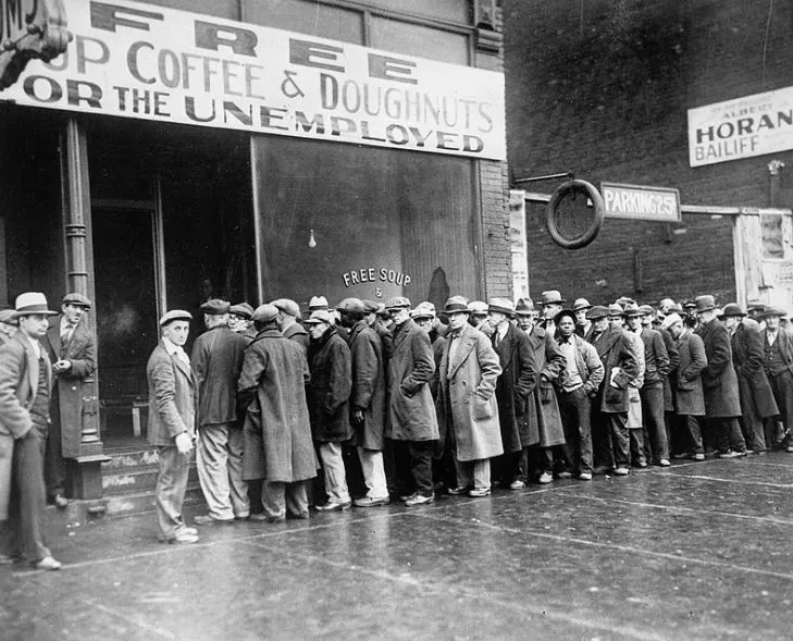 무료 급식소로 몰려드는 사람들 <출처 : 위키피디아>