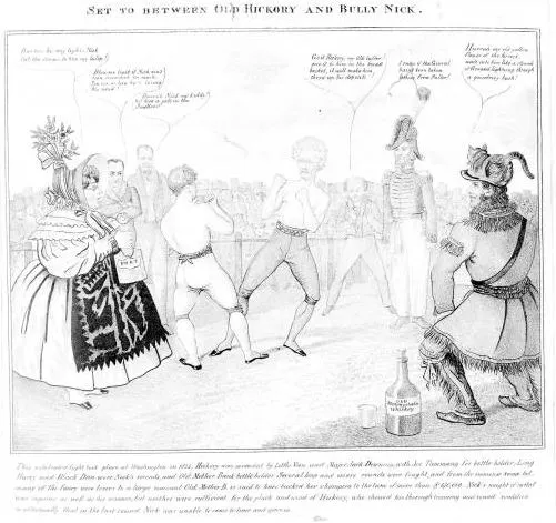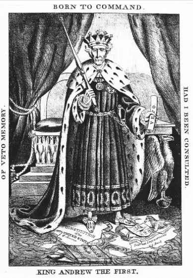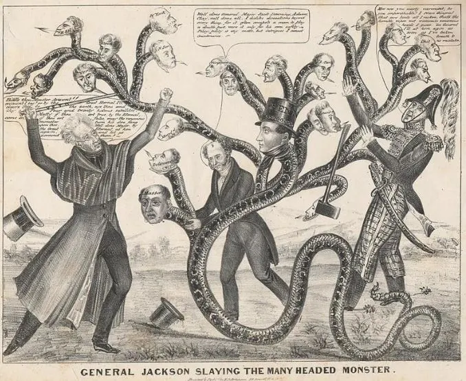 잭슨과 은행의 싸움을 풍자한 삽화 <출처 : 위키피디아>