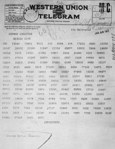 1917년 독일 외무장관 아르투르 치머만(Arthur Zimmermann, 1864~1940)이 1월 16일 자로 멕시코 주재 독일대사에게 보낸 비밀 전보 한 통의 내용이 공개되었다. 일명 ‘치머만 전보(Zimmermann Telegram)’다.
