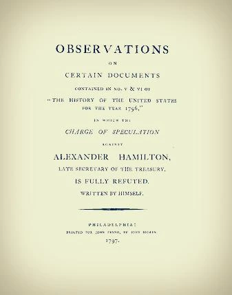 1792년 11월, 주위에서 이 사실을 알게 됐고 해명을 요구했다. 곤경에 처한 해밀턴은 잘못을 솔직히 시인하고, 이에 관련된 내용을 동료 정치인에게 설명했다.
