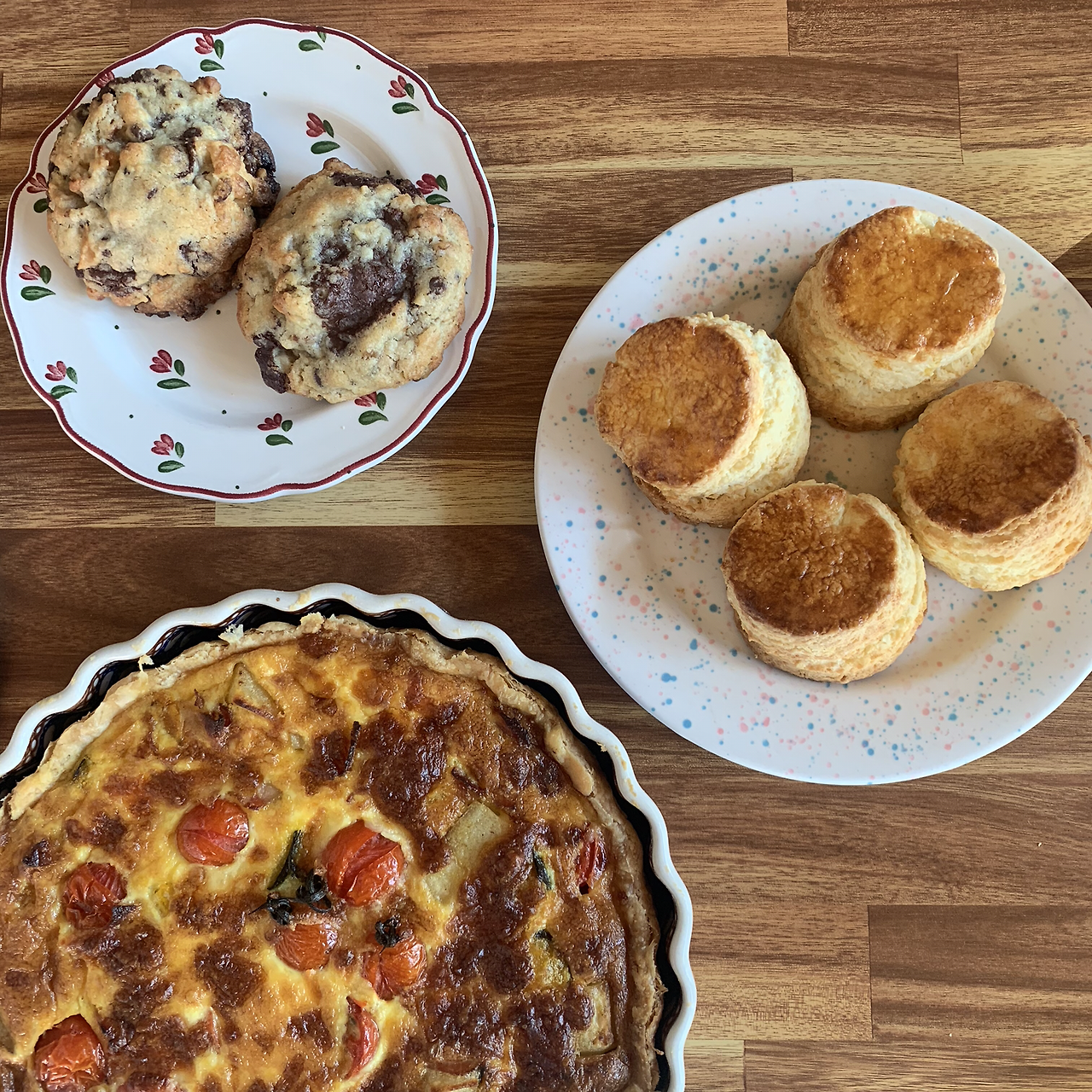 따뜻하게 스콘을 굽고, 초콜릿과 호두를 가득 넣은 쿠키를 굽고, 먹음직스럽게 키쉬를 구워냈다.