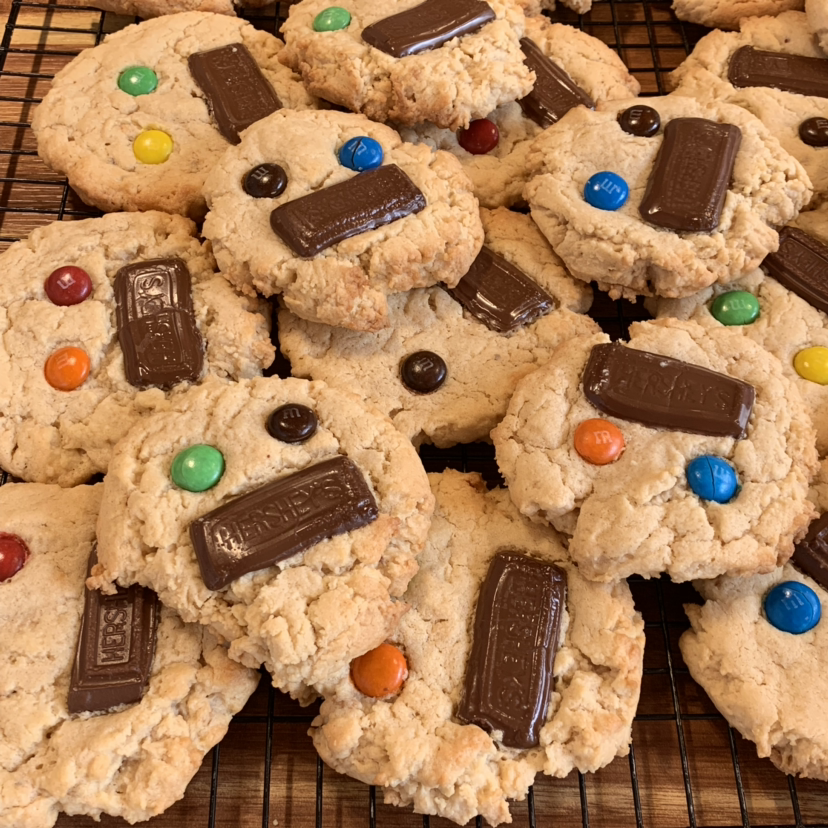 버터, 피넛버터, 설탕, 계란, 박력분 정도가 들어가는 간단하면서도 아주 맛있는 쿠키다. 기호에 따라 초코칩을 넣어도 좋고, 나처럼 위에 초콜릿으로 장식해 주어도 좋다.