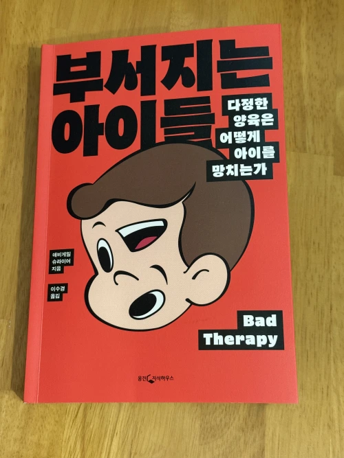 다음으로 이 책의 제목에 대해 살펴보자. 이 책의 원제목은 [Bad Therapy: Why the Kids Aren't Growing Up]이다. 그대로 직역하여 옮기면 "나쁜 치료법 : 아이들은 왜 성장하지 않는가?"이다. 원제목만으로도 충분히 자극적이어서 독자의 흥미를 유발한다. 그런데 한글 번역은 한 걸음 더 나아간가. 제목 "부서지는 아이들"은 굉장히 자극적, 도발적이다. 게다가 부제 "다정한 양육은 어떻게 아이를 망치는가?"로 했다. 책의 내용을 제목으로 끄집어내어 독자들의 이해를 도우면서 '아이를 망친다'는 말로 문제를 더 날카롭게 제기한다. 필자가 출판사 사장이었다면 제목 번역을 이렇게 하자고 제안한 직원에서 보너스라도 주었을 것 같다.