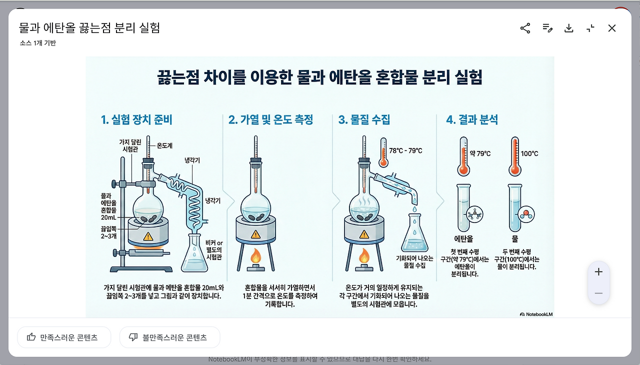 "실험 과정을 설명하는 인포그래픽입니다. 단계가 명확하게 구분되도록 번호를 붙인 목록으로 시각화해 주세요. 깔끔한 다이어그램 스타일을 사용하고, 실험 기구들이 잘 보이게 해 주세요."