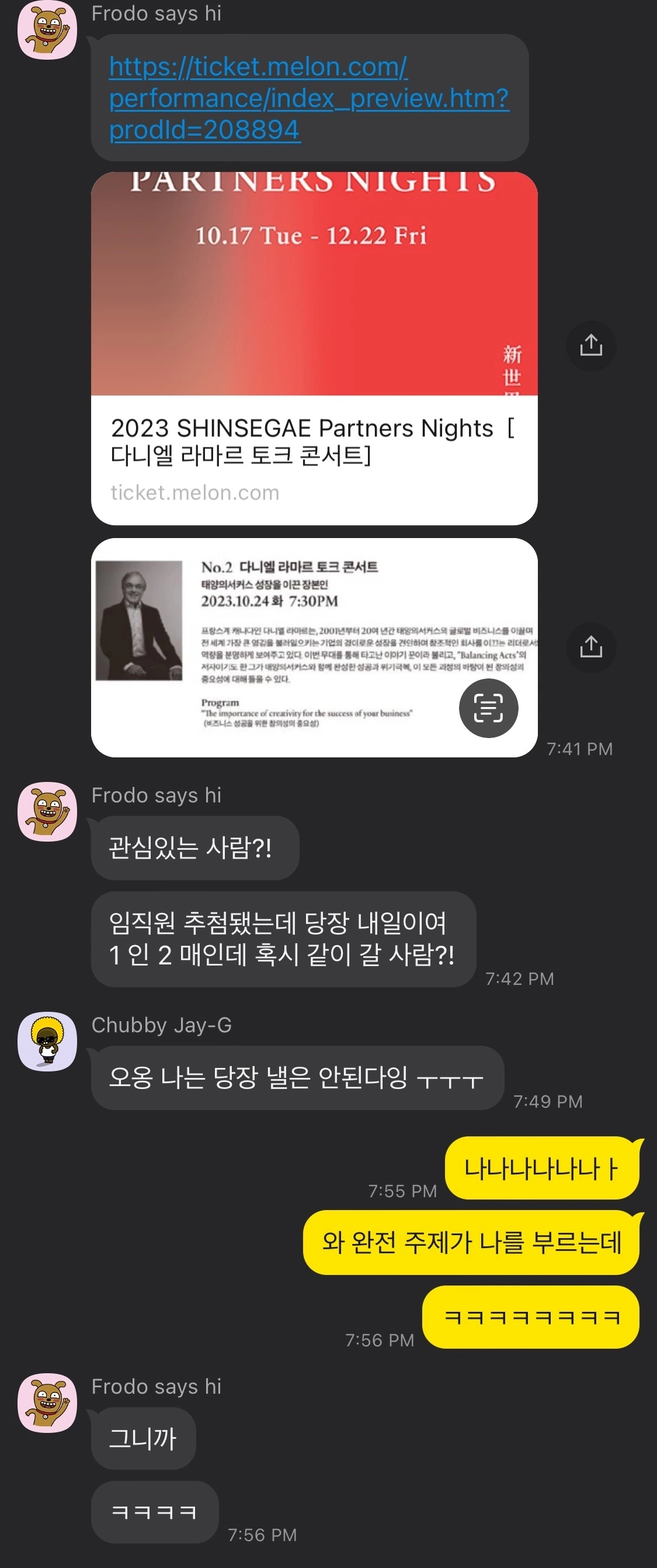 친구가 갑자기 토크쇼 당첨이 되었다며 단톡에서 같이 갈 사람을 구했다.