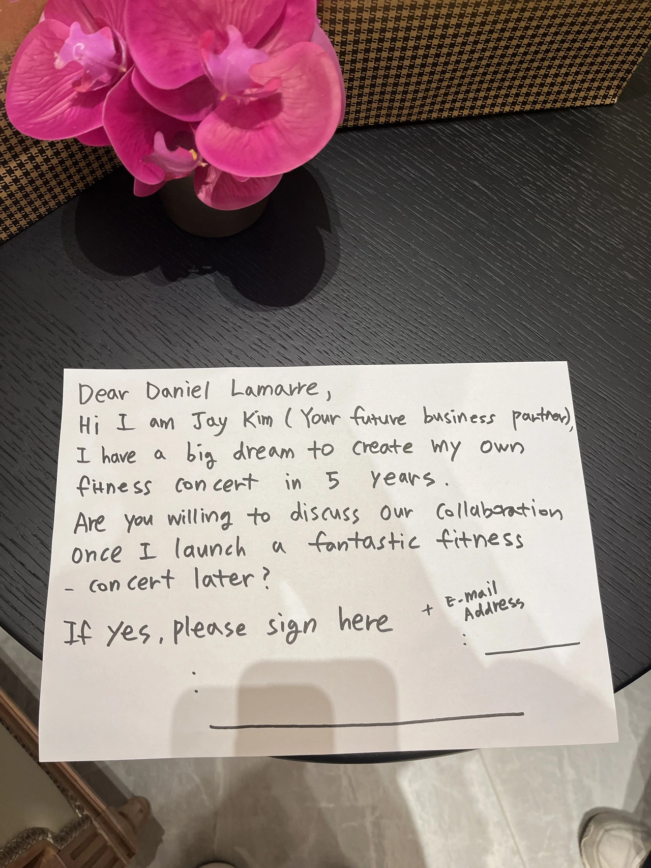 ‘싸인회 줄이 없어질 때까지 한 10분 정도는 있겠지’ 하며 다니엘에게 보여줄 즉흥 제안서를 쓰기 시작했다.